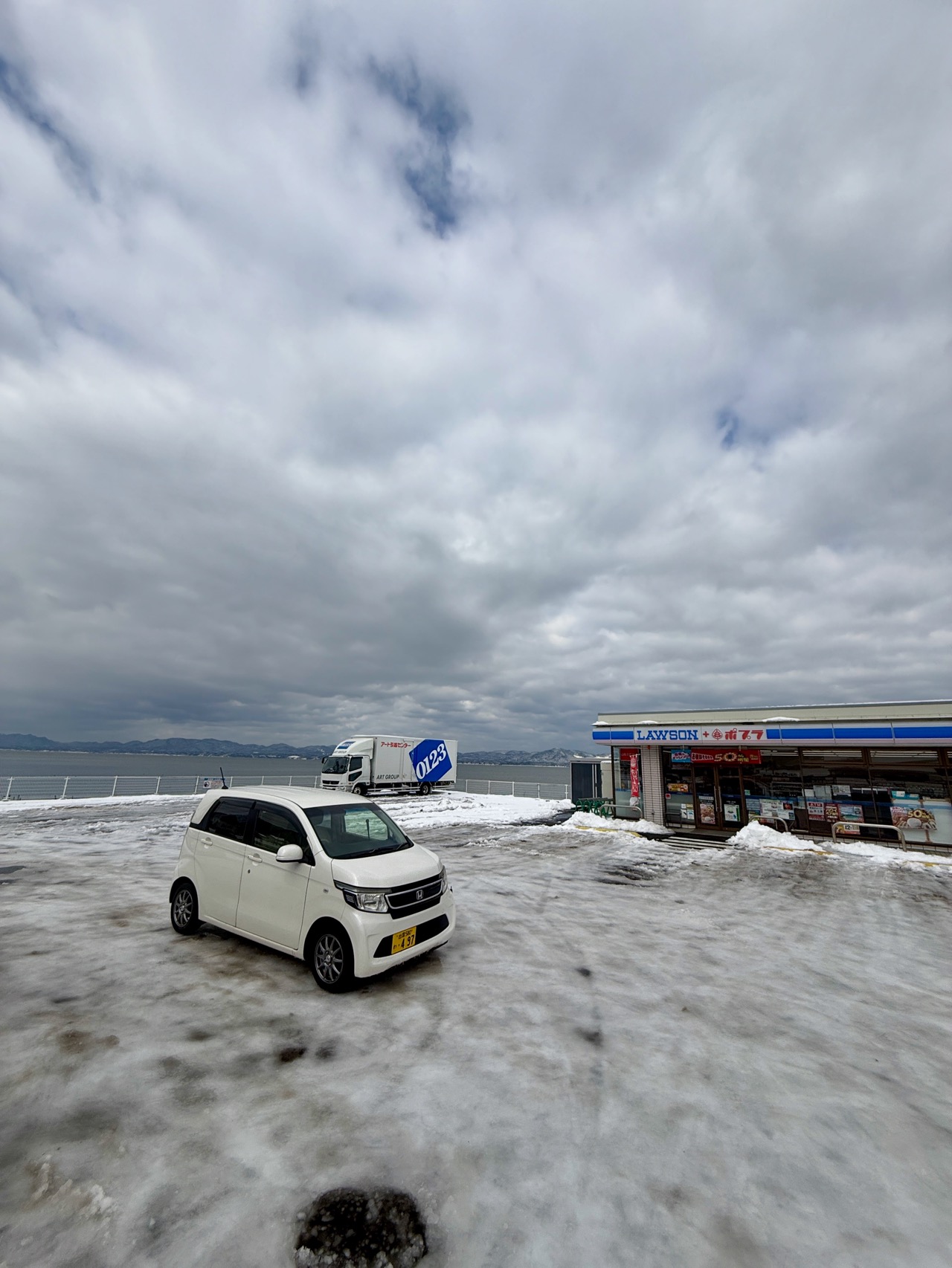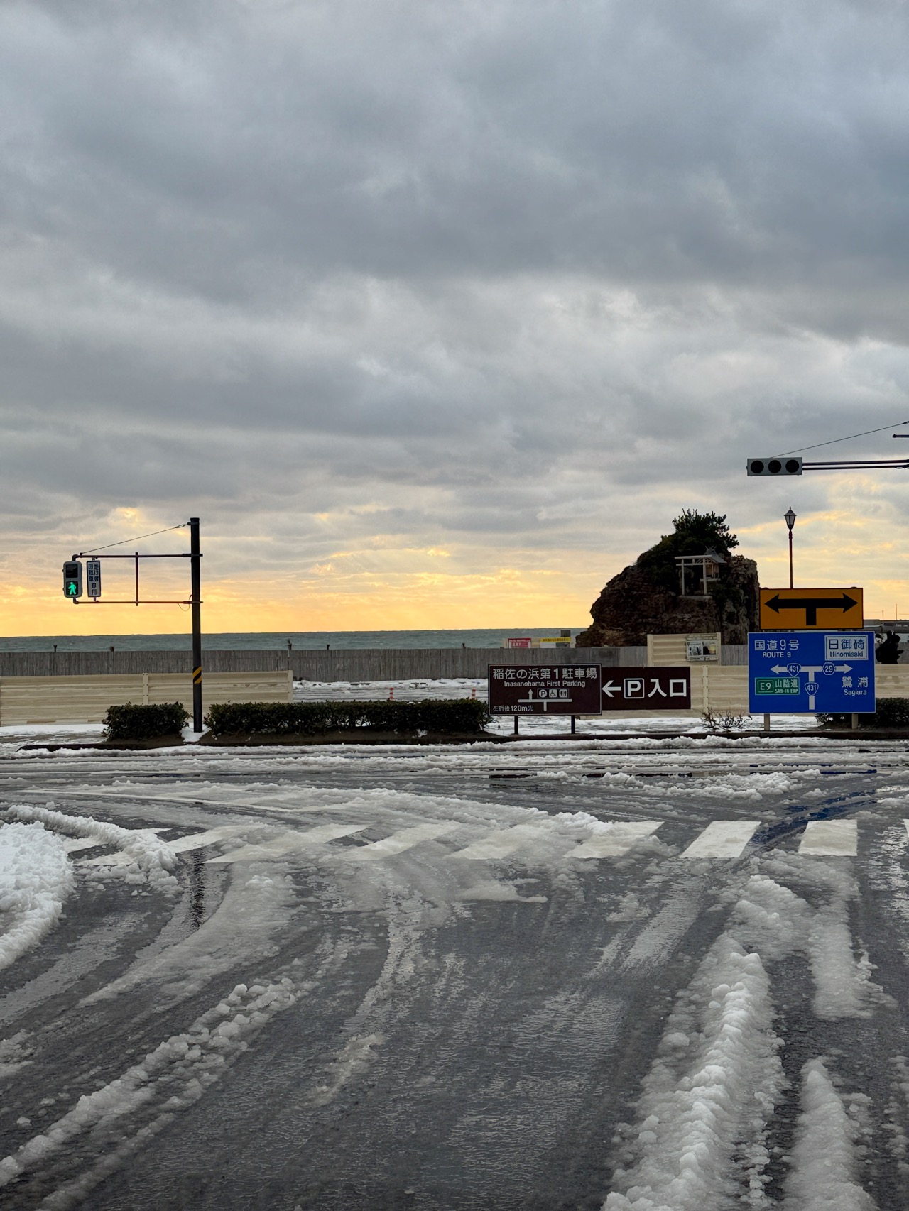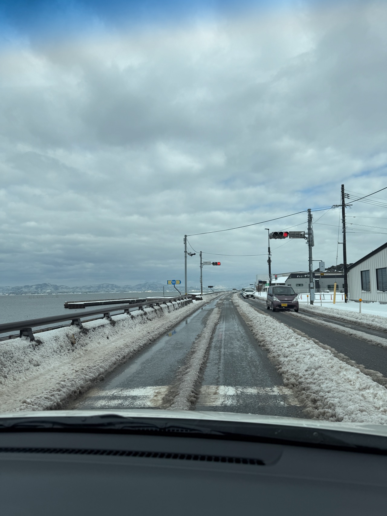 でも、レンタカー返却まで時間があるので、近くの海を見に行くことに。だいぶ雪も溶けてきて、走りやすくなっていた。