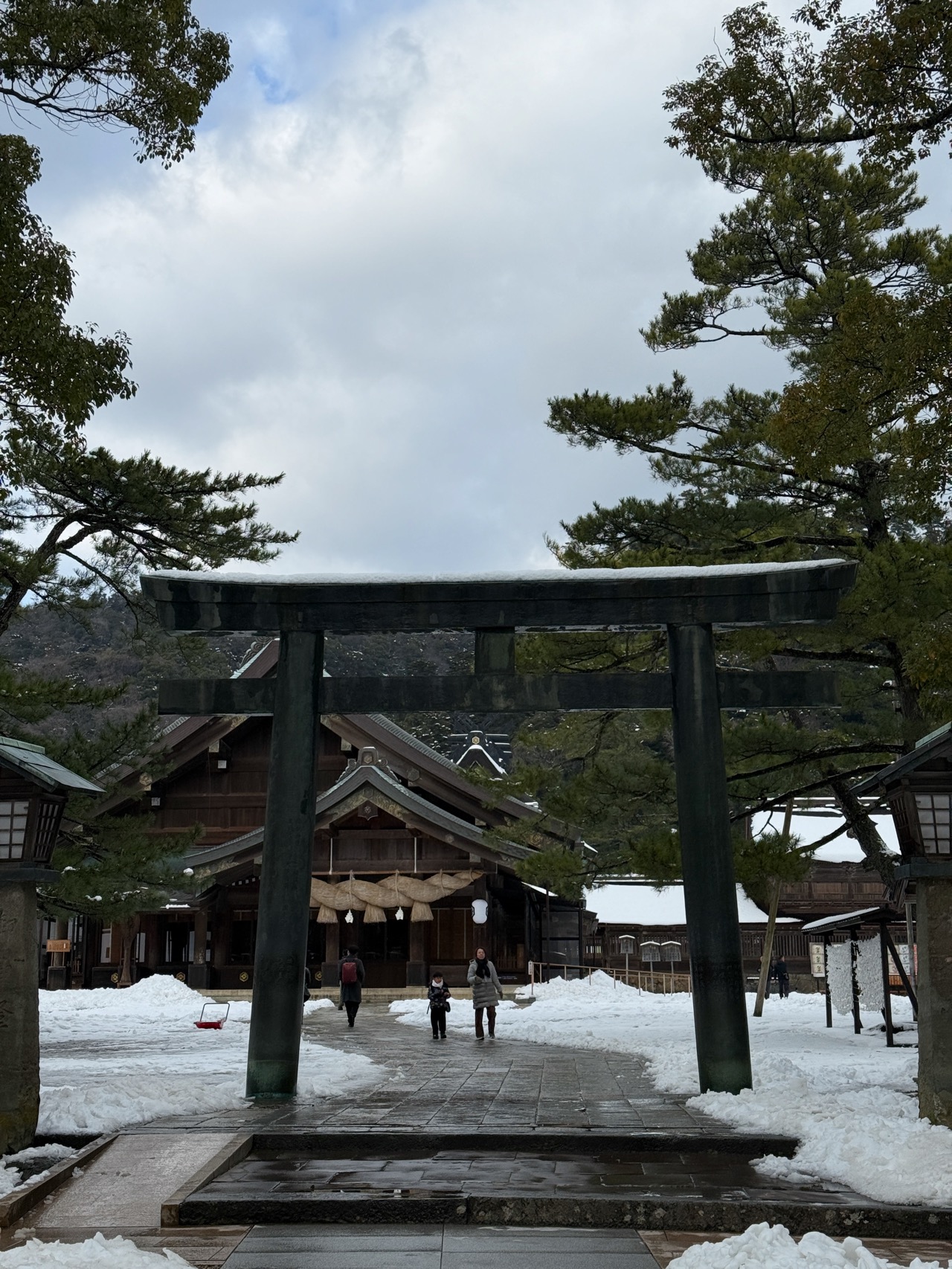 せっかくなので、4つある鳥居をすべてくぐろうと、1つ目の鳥居まで雪道を踏みしめながら戻り、ぬかりなく丁寧に参拝。