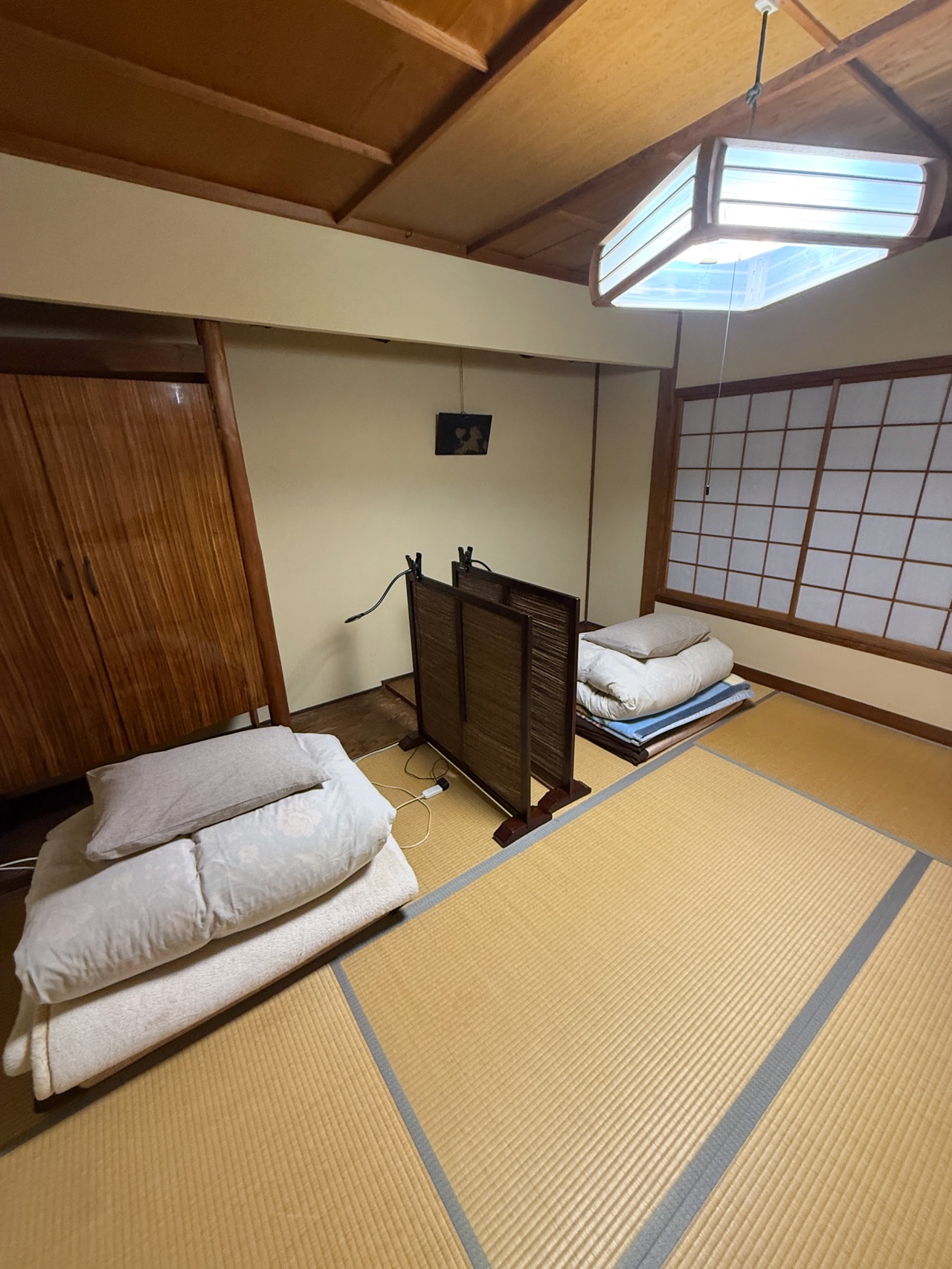 この部屋も私1人で独占! どちらの布団を使っても良いよ、と!