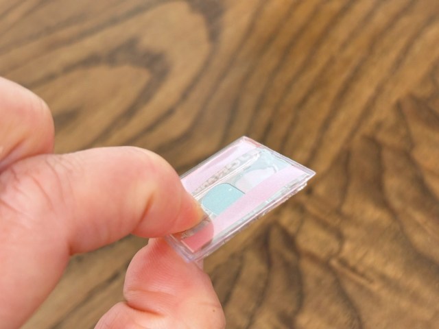 念のため手元にあったボンボンドロップシールを確認すると、同じ仕様だった。どうやら表は硬く、裏はややへこむ構造であっているらしい。