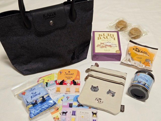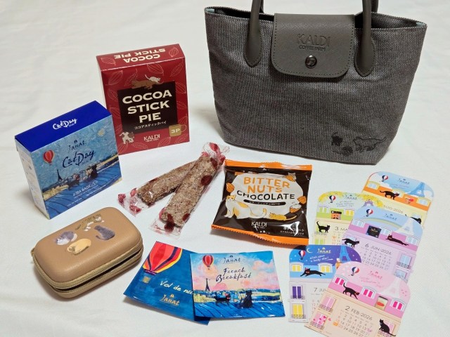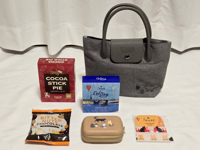 【カルディの本気】毎年人気の「ネコバッグ」はバッグシリーズ屈指の最強コスパ! バッグ2つと各種おやつで1700円は迷わず “買い”!