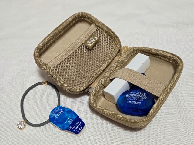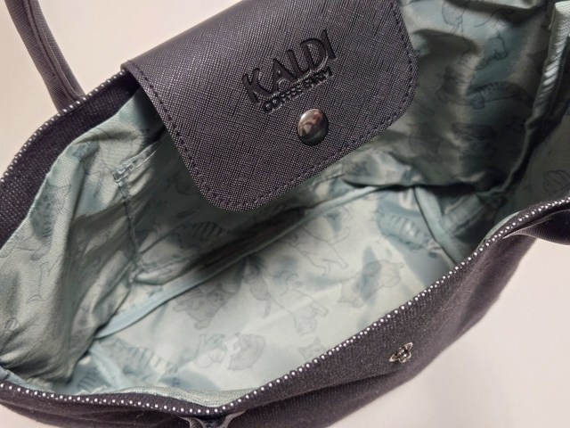 アクセサリーや、イヤホンなど、ちょっとした小物入れとして重宝しそうなサイズ感だな。中にちゃんとカルディのタグが付いてるのが良いね!