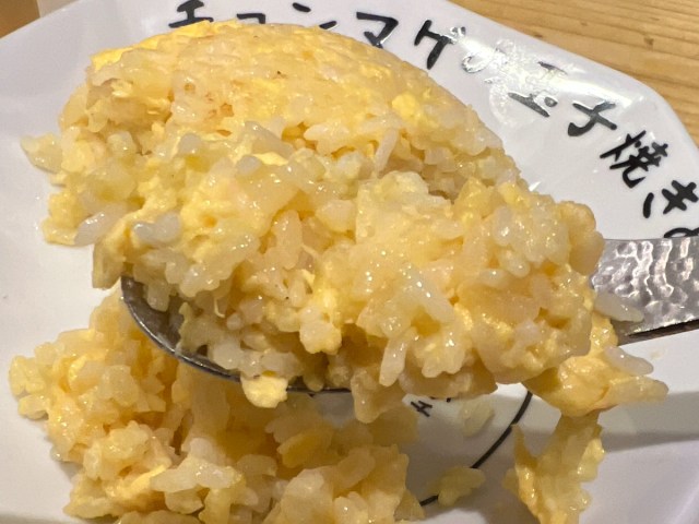 シンプルなのに、というかシンプルだからこそ美味い!で、パラッパラな食感がデフォルトで雑味がなく、玉子の風味とほんのり香ばしい焼き加減が絶妙だ。一口目で感じたインパクトが、まさかこれほどとは……正直、舐めてかかっていた自分を20回くらい殴りたくなった。