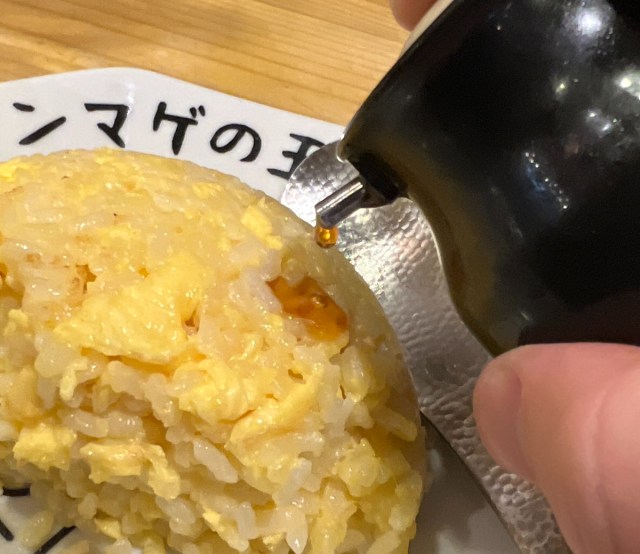 メニューの説明によると、「一の味変」は醤油系の特製ダレ、「二の味変」はお酢系の特製ダレとのこと。パンチの効いた玉子焼きめしに早変わりするらしい。