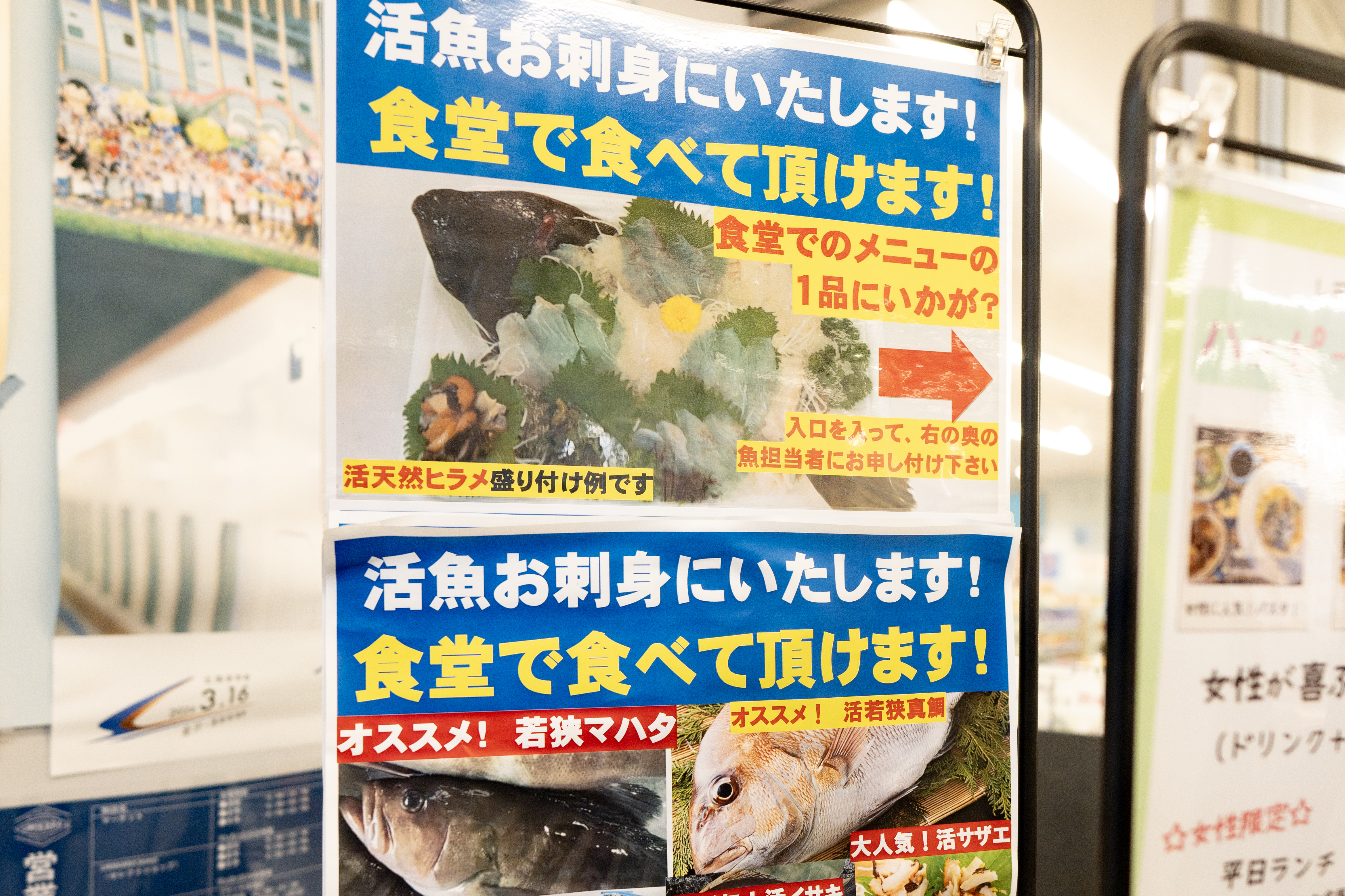 けっこう大きい水槽もあるぞ。活魚も買えるようだ。