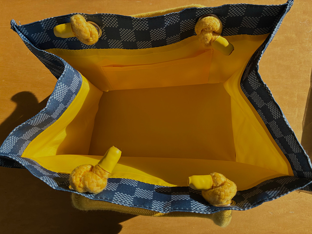 まあ焦らず一つ一つ見ていこう。まず、福袋の中身が全部入っていた「トートバッグ」。大胆なデザインの持ち手。