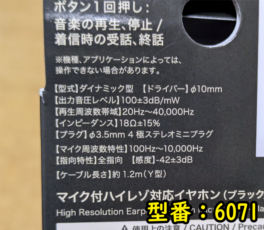 2024年4月当時、ダイソーはハイレゾ対応の有線イヤホンは2種類取り扱っていた。「550円なのに音が良い」との噂を聞き付けた私は、まずは型番の若い「6071」を購入。その後にすぐに「7301」も購入している。