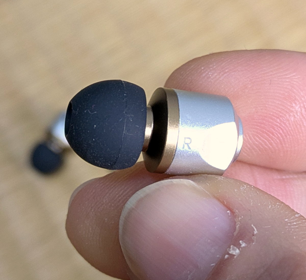 イヤーピースは1サイズでおそらくサイズ的には「M」と思われる。私の耳穴にはちょうど良い大きさだ。