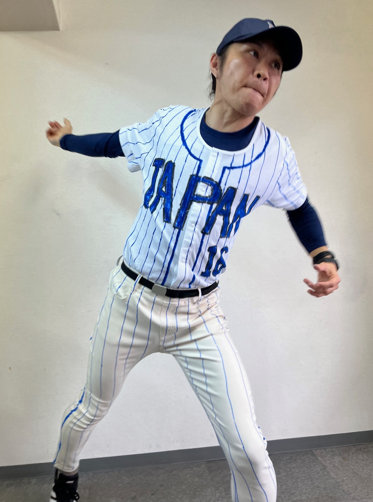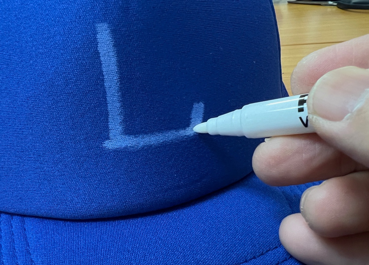 ここまで来たら、小道具でなんとか “ニア大谷” までもっていこう。まずはAmazonで買った460円のキャップに、白いマジックでロゴを描く。