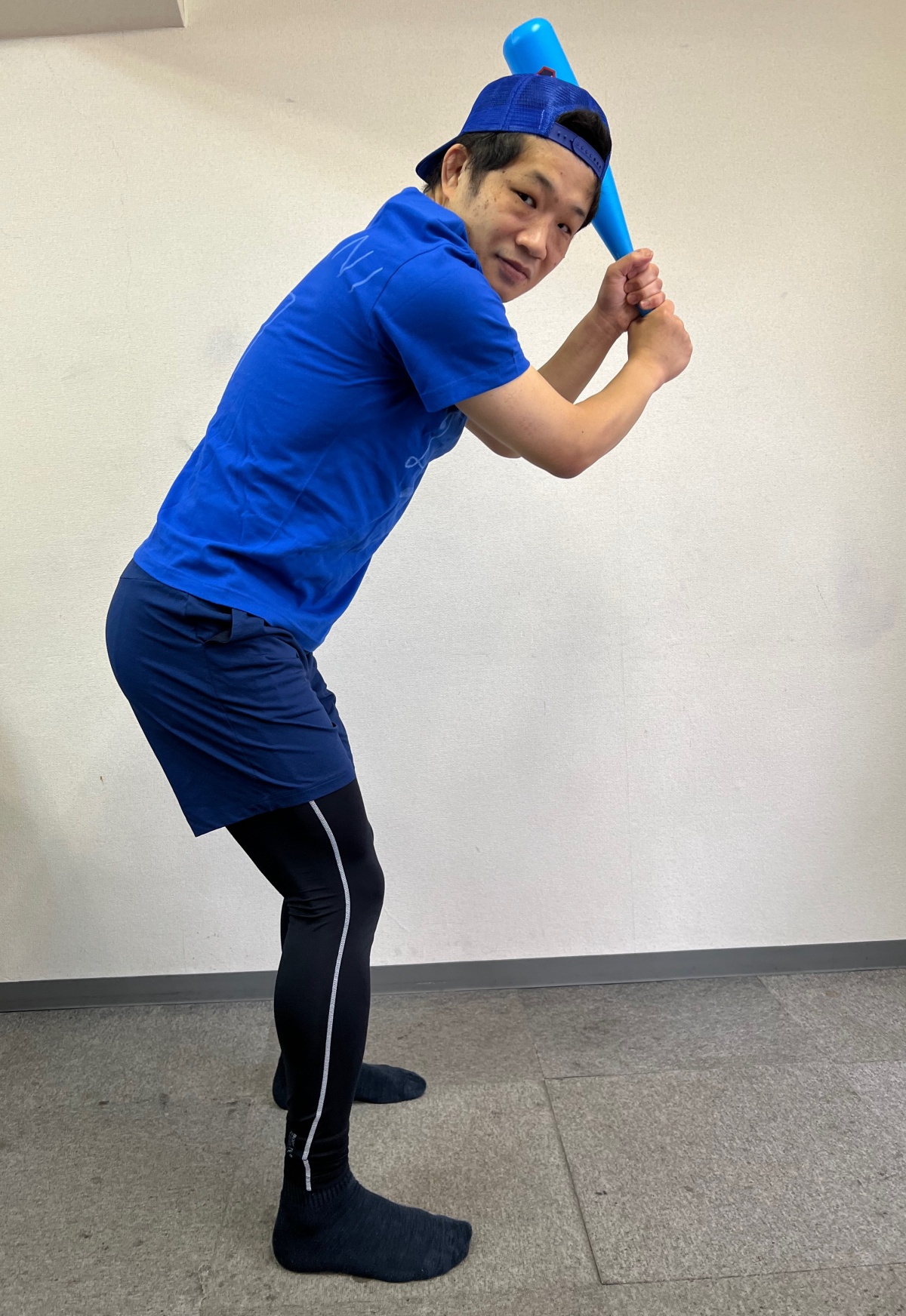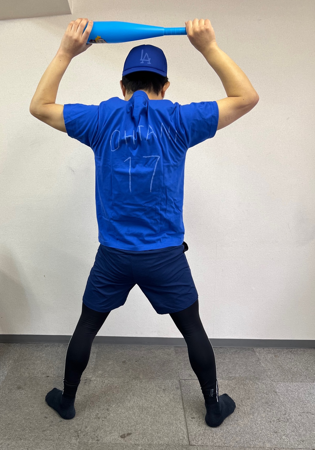 自分としては自主トレ中の大谷選手を目指したが、よくよく見ると不気味すぎる。ランニング中にこんなヤツが前から走ってきたら、私なら絶対に目を逸らすだろう。
