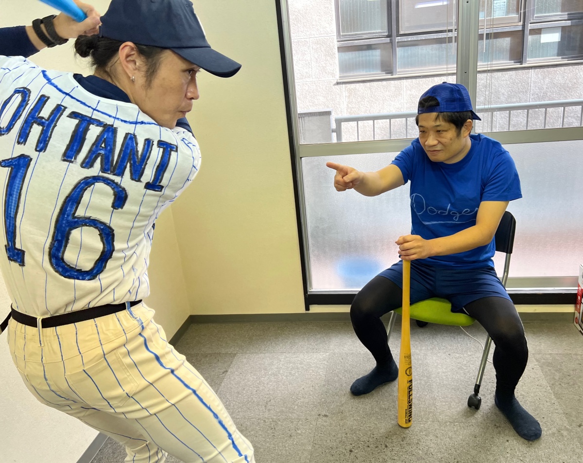 ▼大谷翔平にバッティングフォームのズレを指摘する大谷翔平