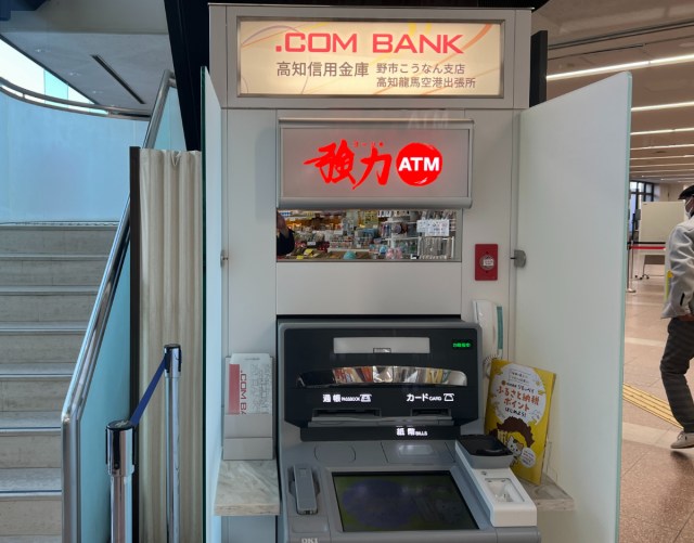 高知信用金庫のATMらしいが、何が「強力」なのかは不明。このあたりの独特のセンスも、地方空港ならではの光景だ。