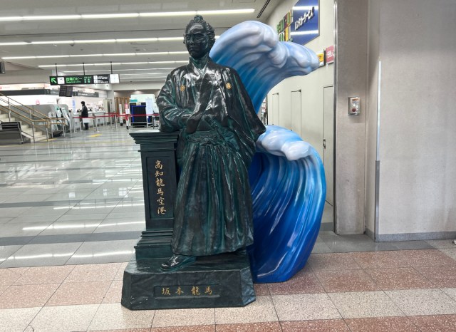 到着ロビーを出ると、まず目に飛び込んできたのが坂本龍馬像だ。