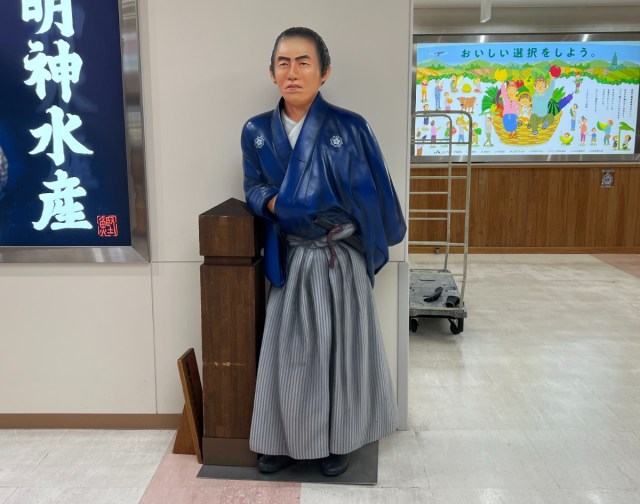 そして2階ロビーに上がり歩いていると、今度はやたらリアルな龍馬の姿が!