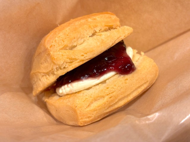 数年前から揚げたてチュロスを販売し始めただけでなく、なんと2025年10月からはスコーンサンドを販売しているのである!