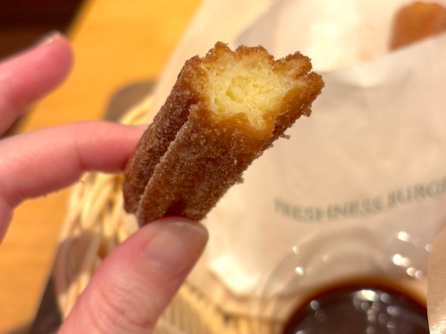 シナモンシュガーがたっぷりかかってるので、短いチュロスが3本っていう量もちょうどいい。チェーン店でこの味が食べられるのはよいと思います。アツアツのコーヒーと合わせるともっと美味しいかも。