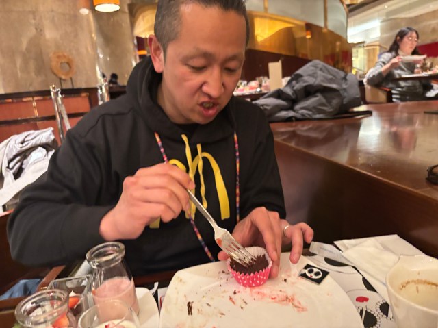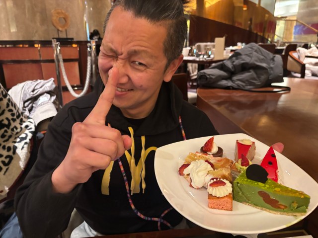 マーブルラウンジのスイーツビュッフェに来ているのは95パーセントが女子。残りの5%ほどが男性……という感じだろうか。家族連れでもない普通のおっさんは……サンジュン氏くらいしかいない。