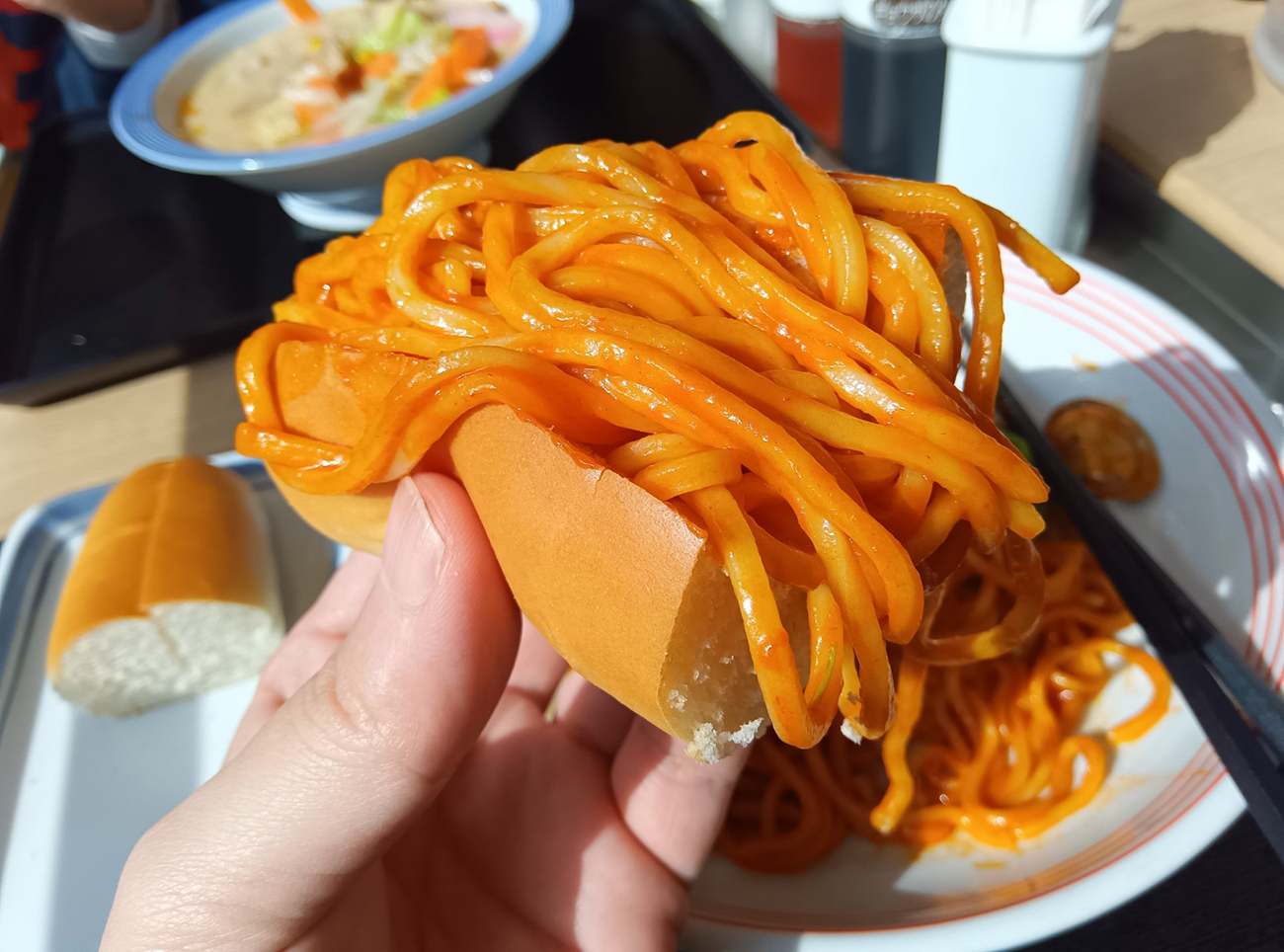 なお、セットのコッペパンには「ナポリタンを挟んでください」と言わんばかりに切れ目が入っている。語りかけられるままにナポリタンを挟んで食べてみたところ、ふわふわのコッペパンの香ばしさとちゃんぽんナポリタンのつるつるした質感が謎のハーモニーを奏でる。これもウマイんかい。