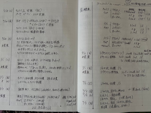 ▼ノート(記録しておくと翌年の作業に活かせるけど、ここまで細かく記録しなくて大丈夫)