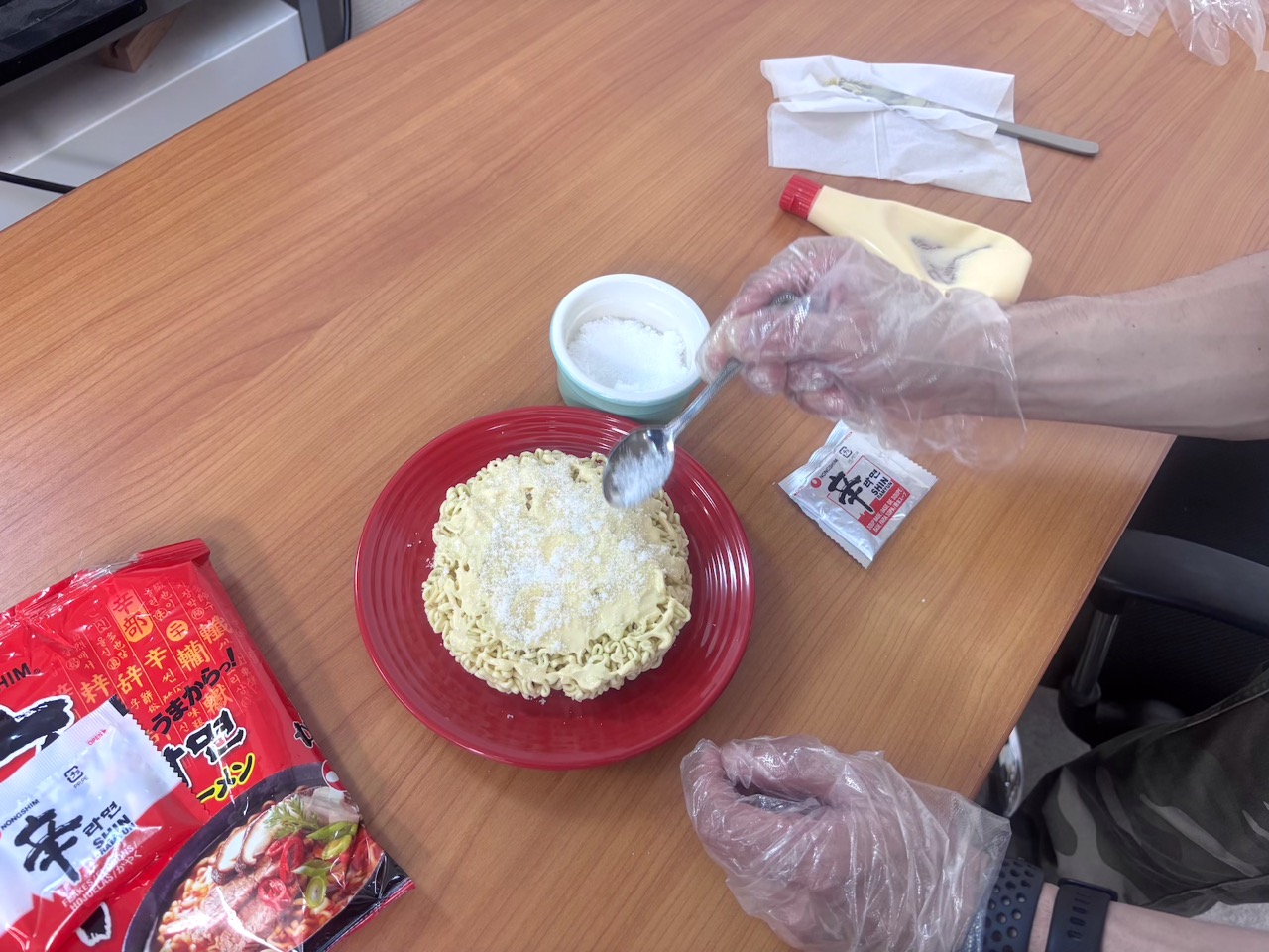 また、マヨネーズは少し重たくなるのではと心配していましたが、実際にはまろやかさとともにコク(うま味)が加わり、ただ生ラーメンを砕いて食べるよりも、ずっと味に深みが出ました。砂糖との相性もとても良かったです。