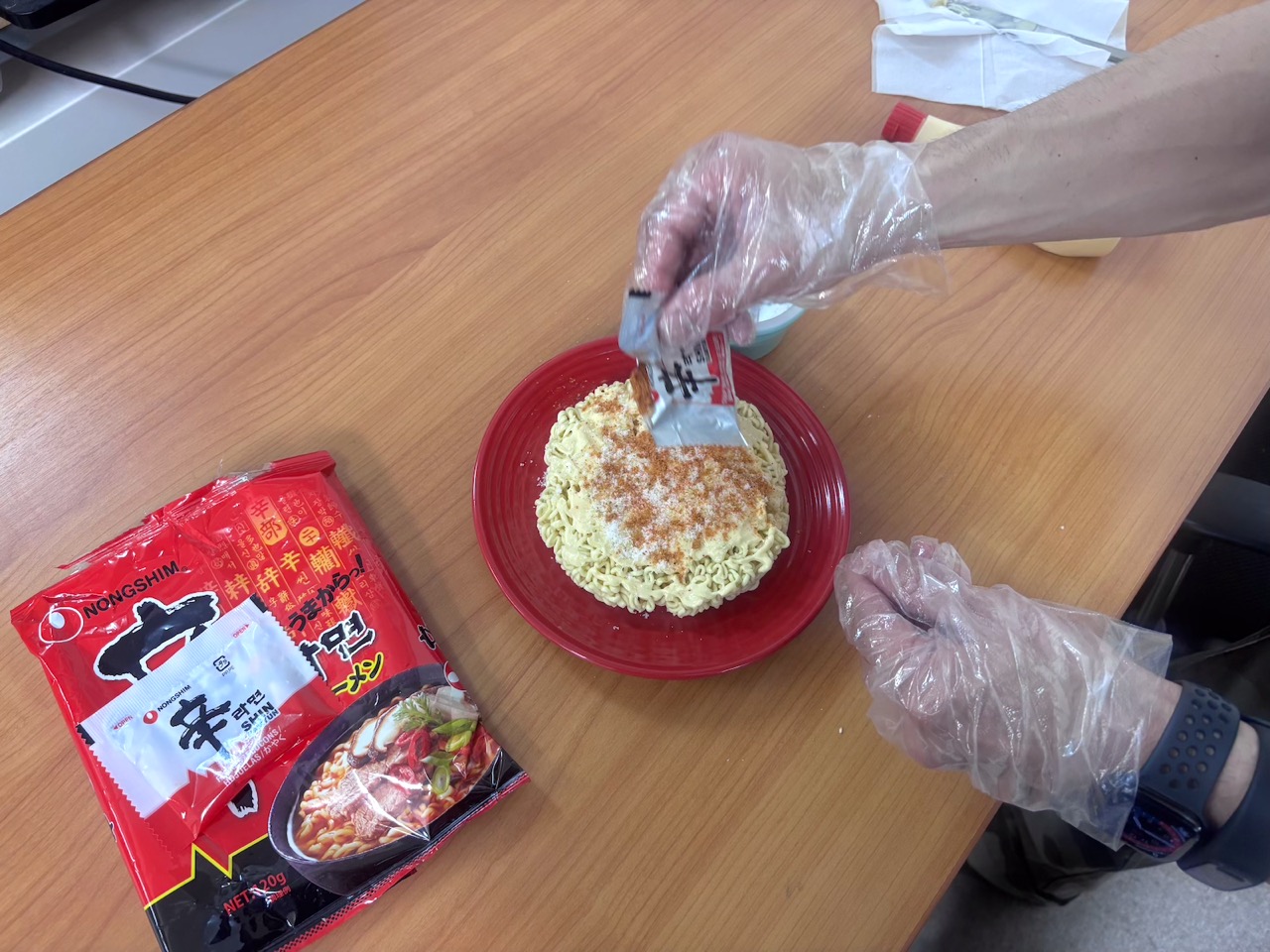 辛ラーメンのスープは味がかなり濃いので、少量から始めて、味を見ながら調整するのがおすすめです。(韓国人の私は前後合わせて半分ほど使うのが好きですが、かなり辛く感じるかもしれません。)