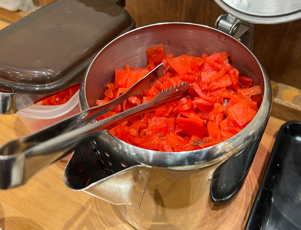 ▼卓上の福神漬けは自由に取ってOKだが、当然ながら常識の範囲で盛り付けよう