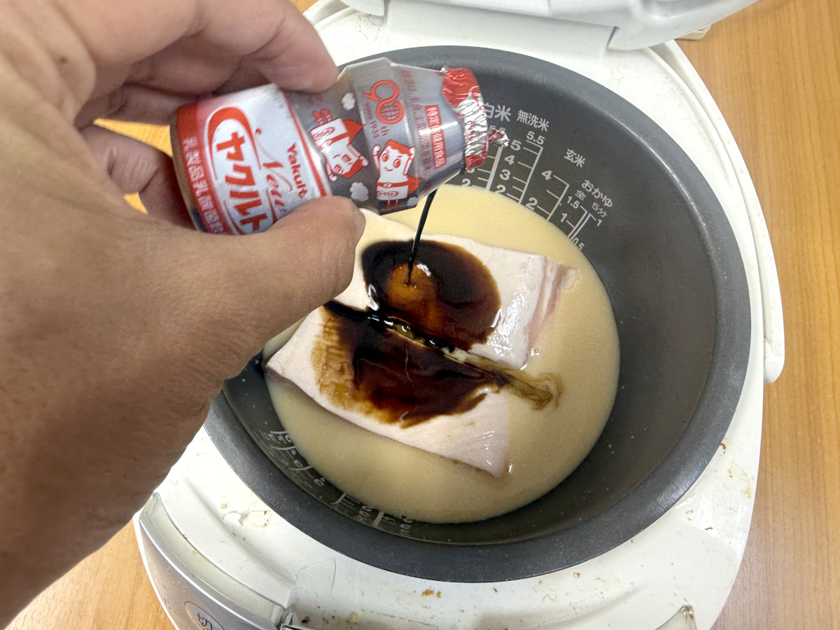 つい先日のこと、SNSを眺めていると「ヤクルトで作る豚の角煮」のショート動画が流れてきた。炊飯器で角煮は定番だが、そうかヤクルトを使うのか。これはちょっと気になるかも……。