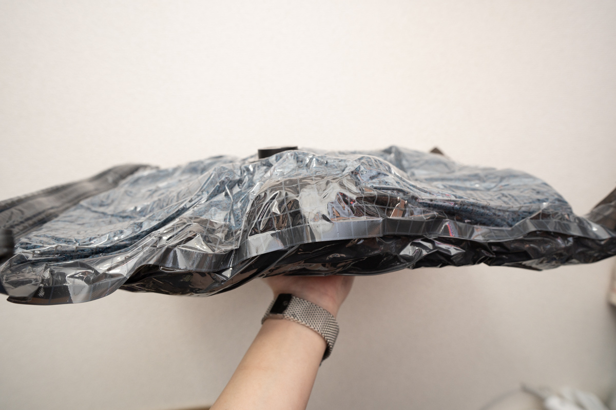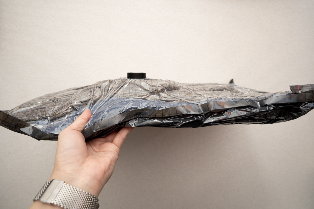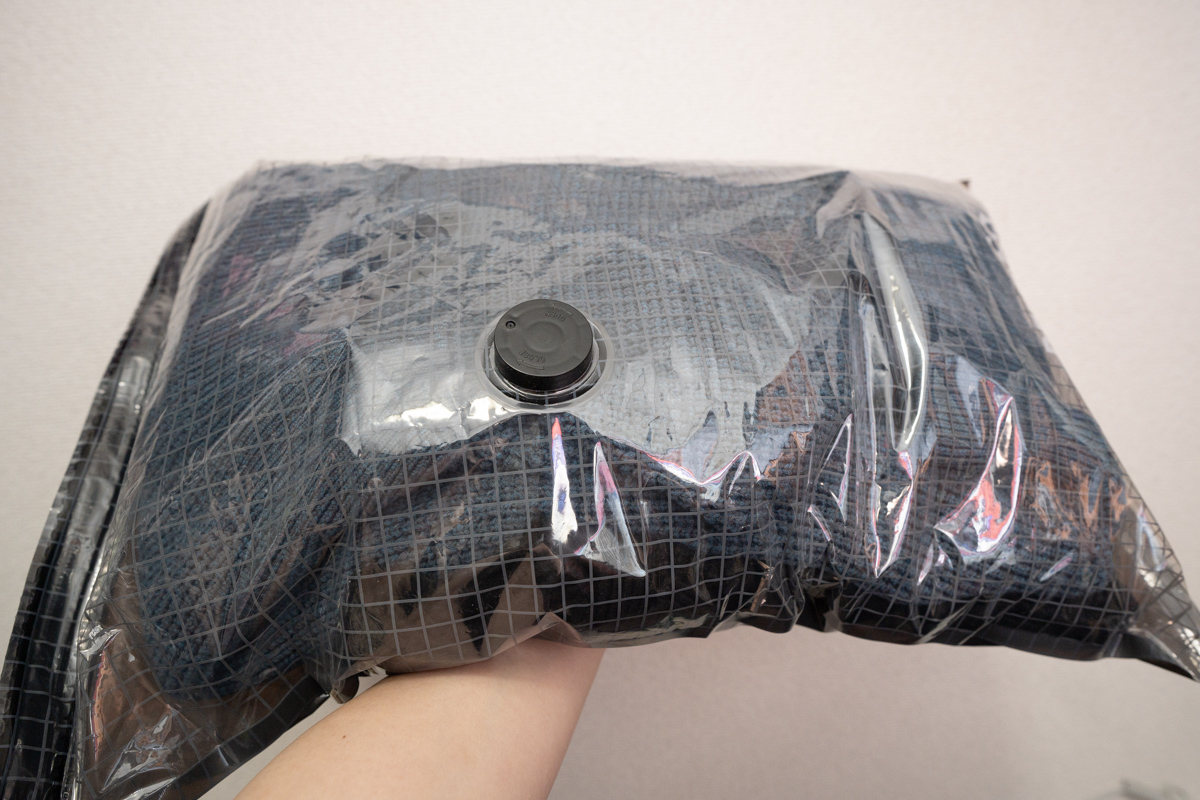 しかし私の目的は、ちょうど仕舞おうと考えていたセーター類や毛布など、畳んでもスペースをとる冬物の省スペース化。その観点で性能を検証します。