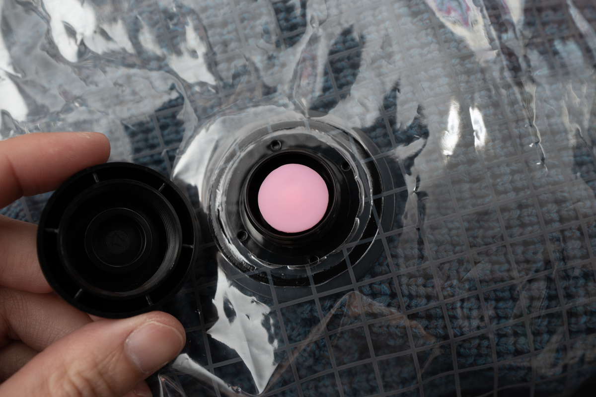 まず、袋についたキャップを開けます。このキャップは、これ以上回せないという状態まで締めることが出来ます。