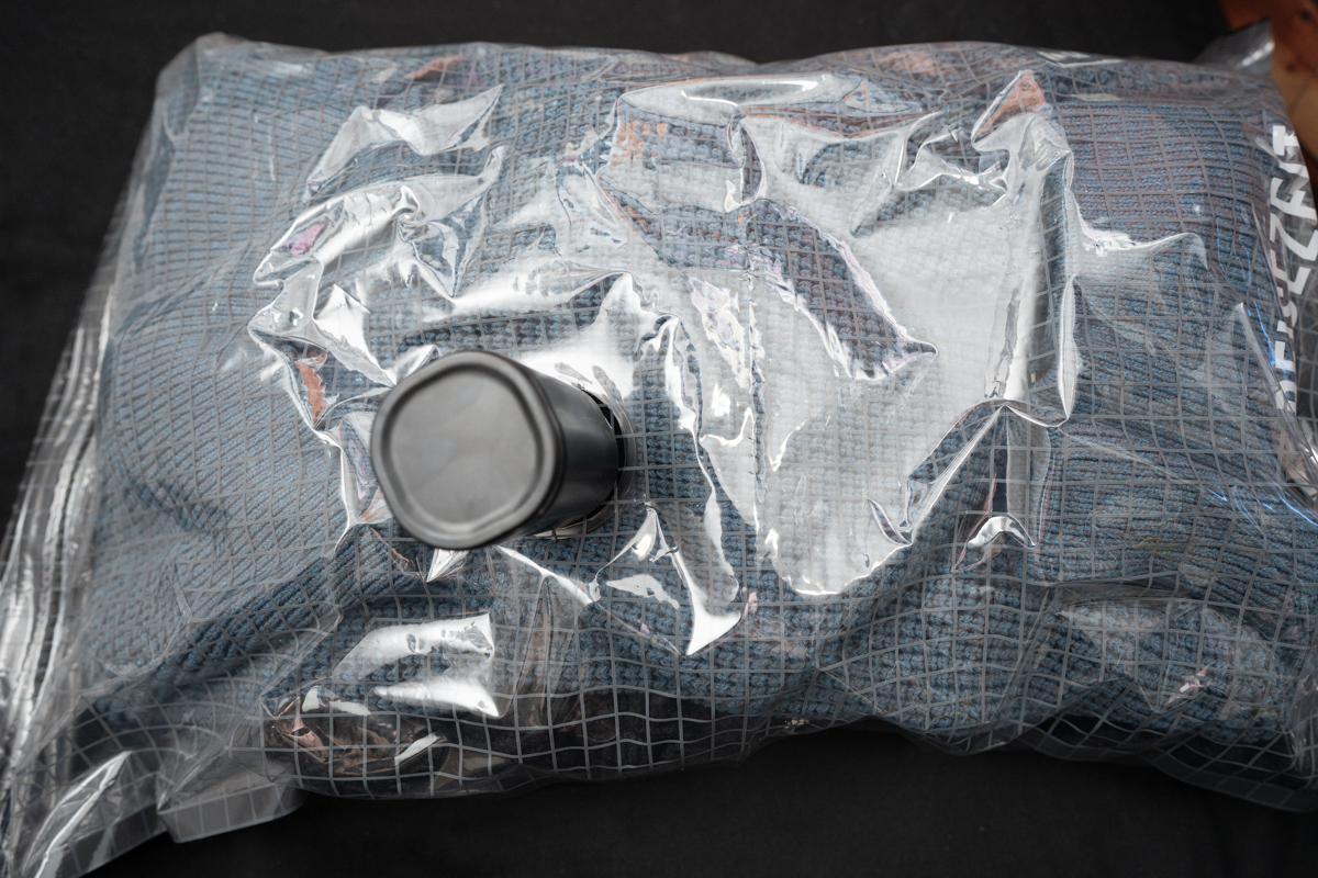 スタート直後はとても良かったのですが、3kPa(一般的な掃除機は20kPa前後)にニット3着は厳しかったかもしれません。衣類側の形状保持力に負けて、空気を吸い出せていない様子。