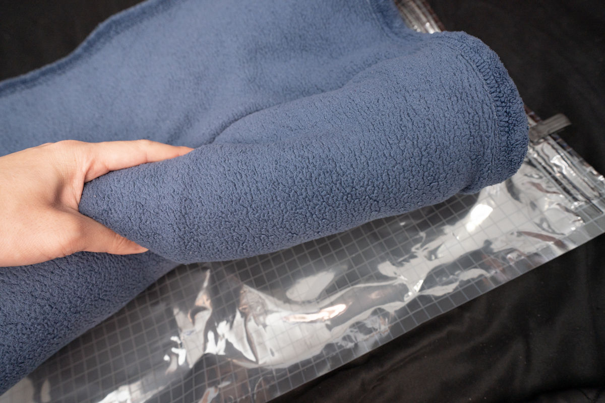この毛布と、先ほど入らなかった4着目のニットを一緒に圧縮してみましょう。