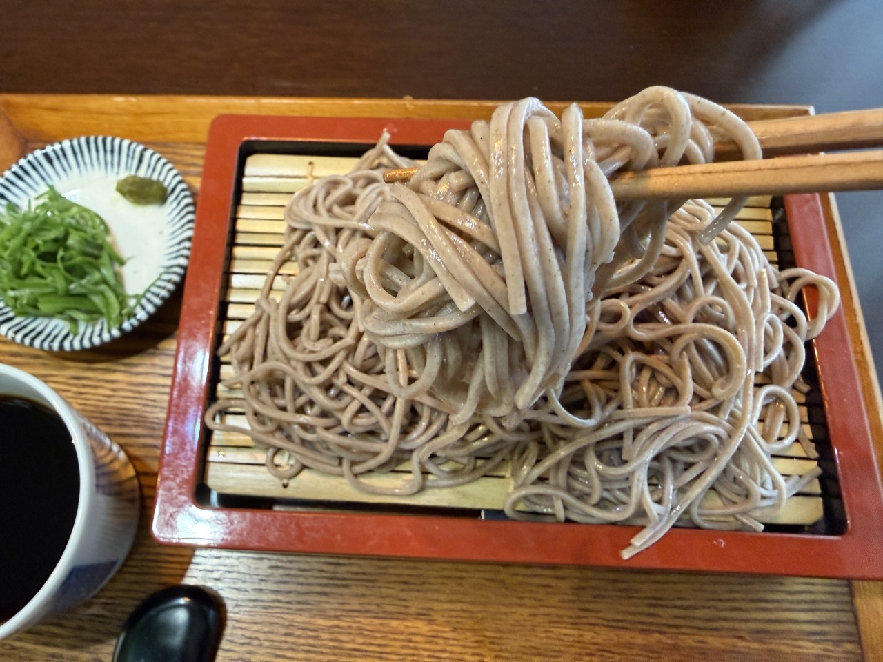 モチモチっとした食感の蕎麦で、小麦粉先行かなと思いきや、蕎麦粉が主役の蕎麦だった。六割くらいな気もするが、ちょうどいい塩梅。