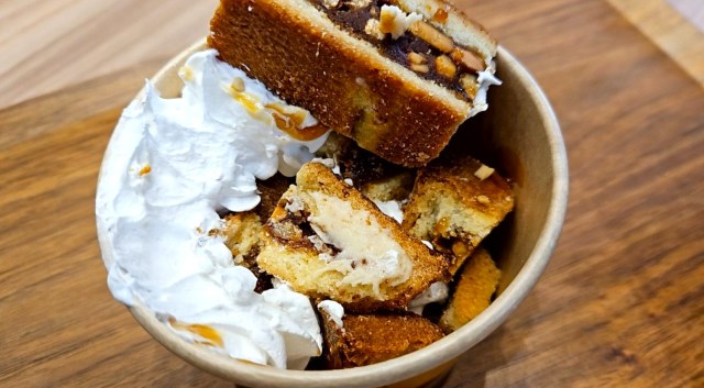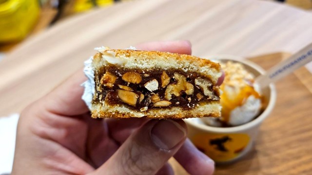 通常の商品と比べるとピーナツ&キャラメルの比率は少な目なのだが……そもそも、この生地がバカ美味いので個人的には買って大正解の商品であった。