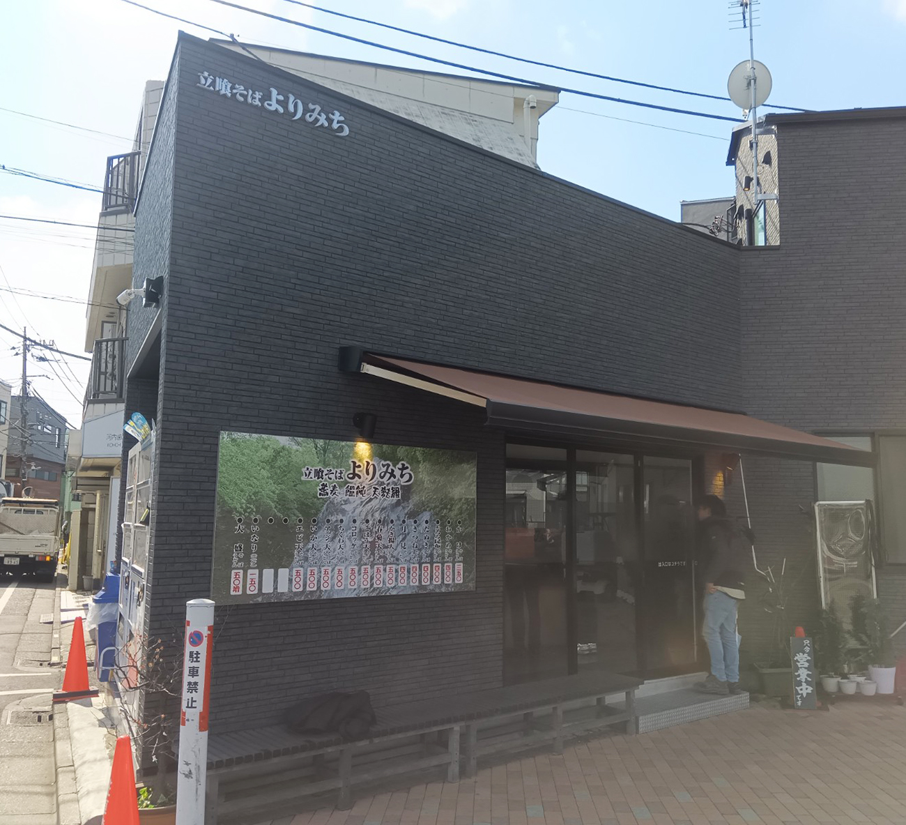その立ち食いそば屋というのが『立喰そば よりみち』。目黒区端の住宅街路地を南下していたところ、環七通りとの交差点にポツンと佇んでいたのがこの店だ。