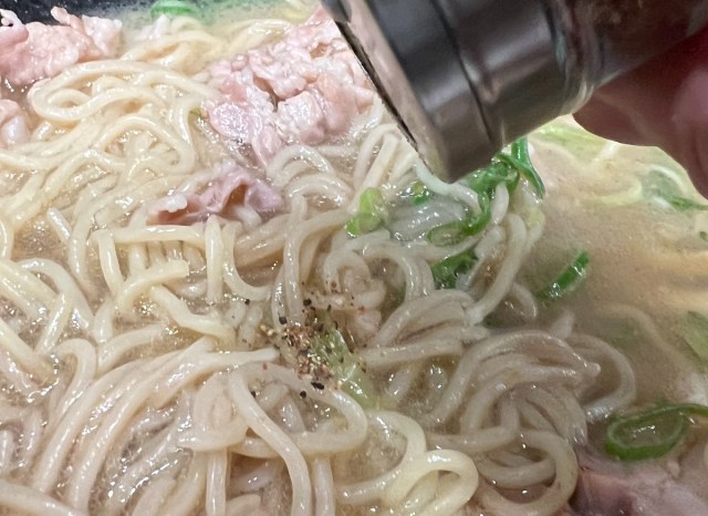おっ、これは良い。スープの味が一段と引き締まって、全体のキレが増した。味が単調になりかけたところに、ちょうどいいアクセントだ。