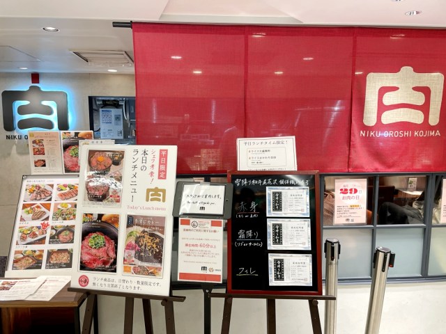 東京駅改札内の1階。グランスタ東京の中央通路エリアにある「肉卸小島」という店にその弁当は売っている。
