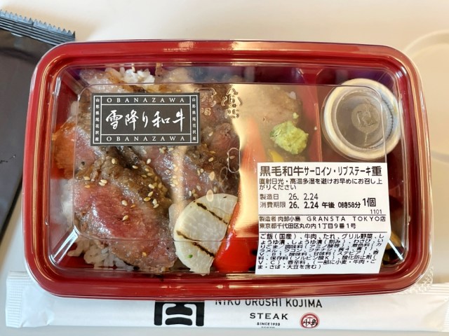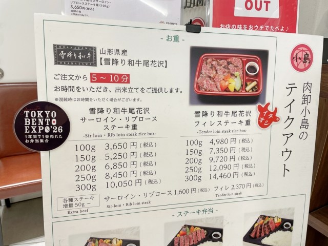 結局この日は『雪降り和牛尾花沢サーロイン・リブロースステーキ重』の100グラムを購入した。提供まで5~10分かかるので、注文の際は新幹線の発車時間に注意してほしい。