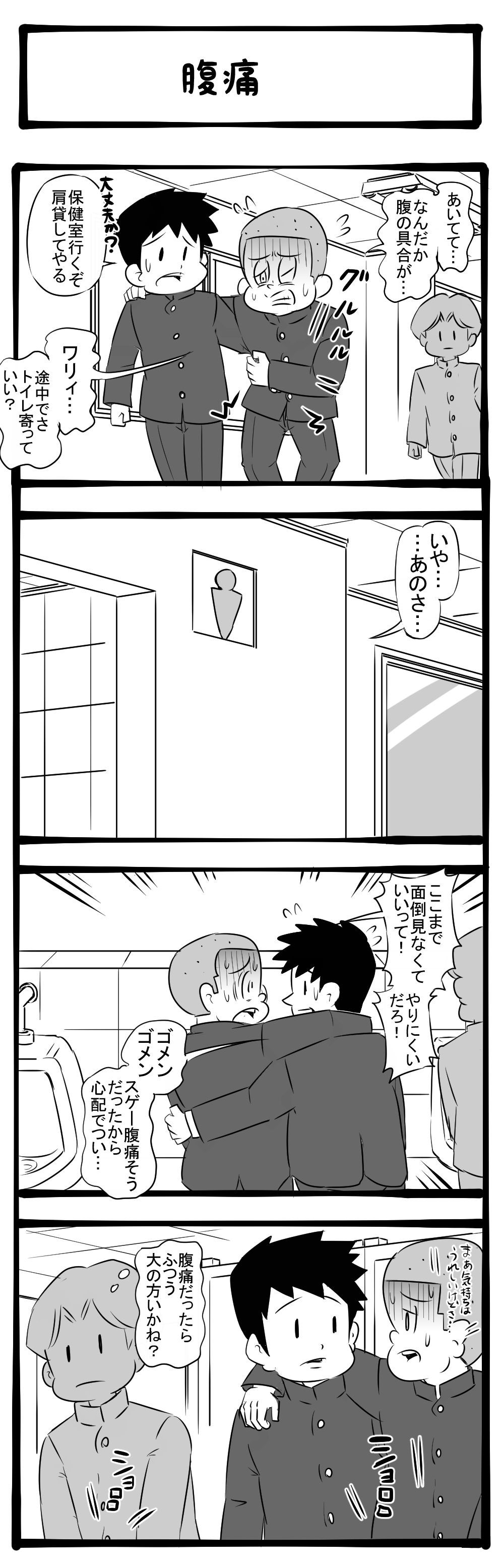 ソッチじゃないだろ! 腹の痛みに苦しむ友人! 四コマサボタージュBYD第312回「腹痛」