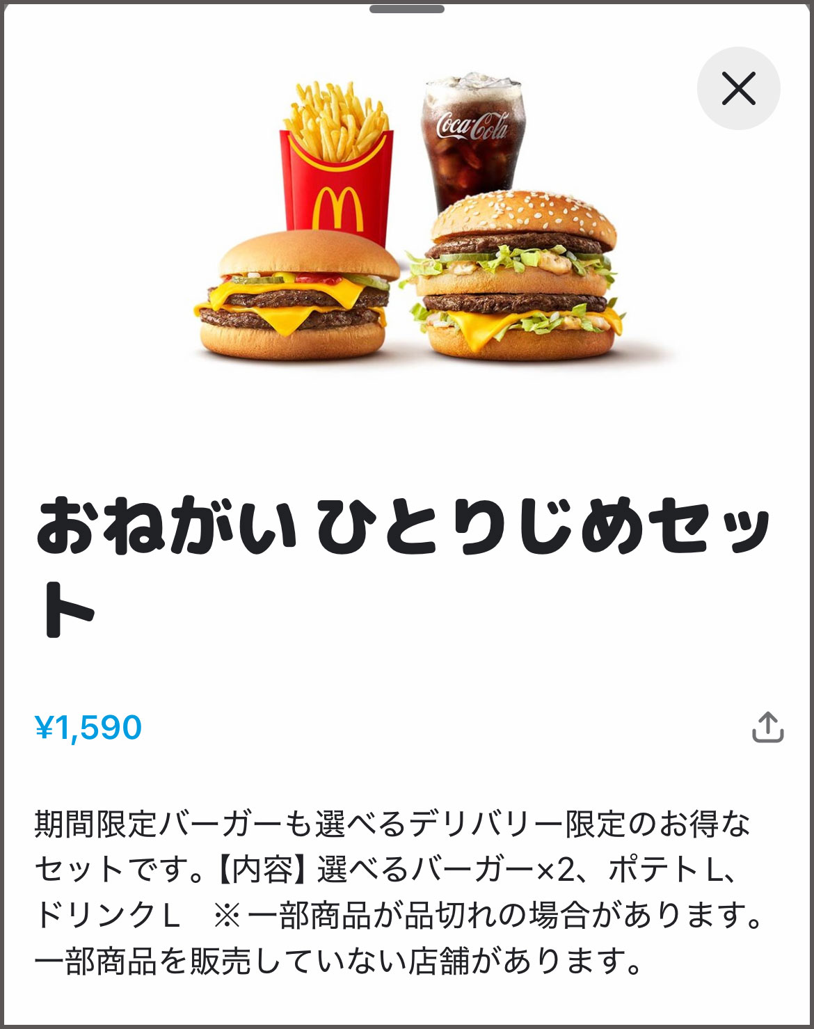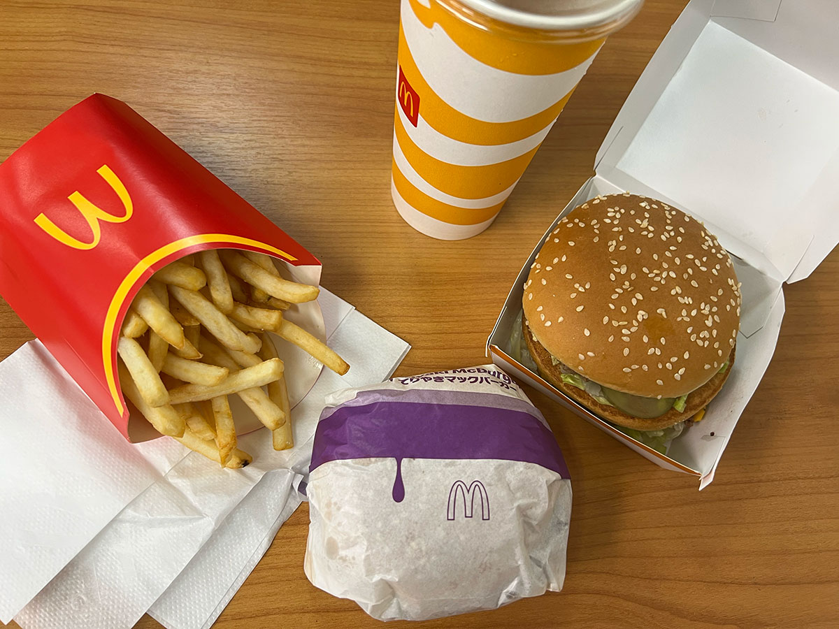 ▼ハンバーガーが2つ付いてくるのがいい! ビックマック2つとかも選べたが、今回は1つをてりやきに。