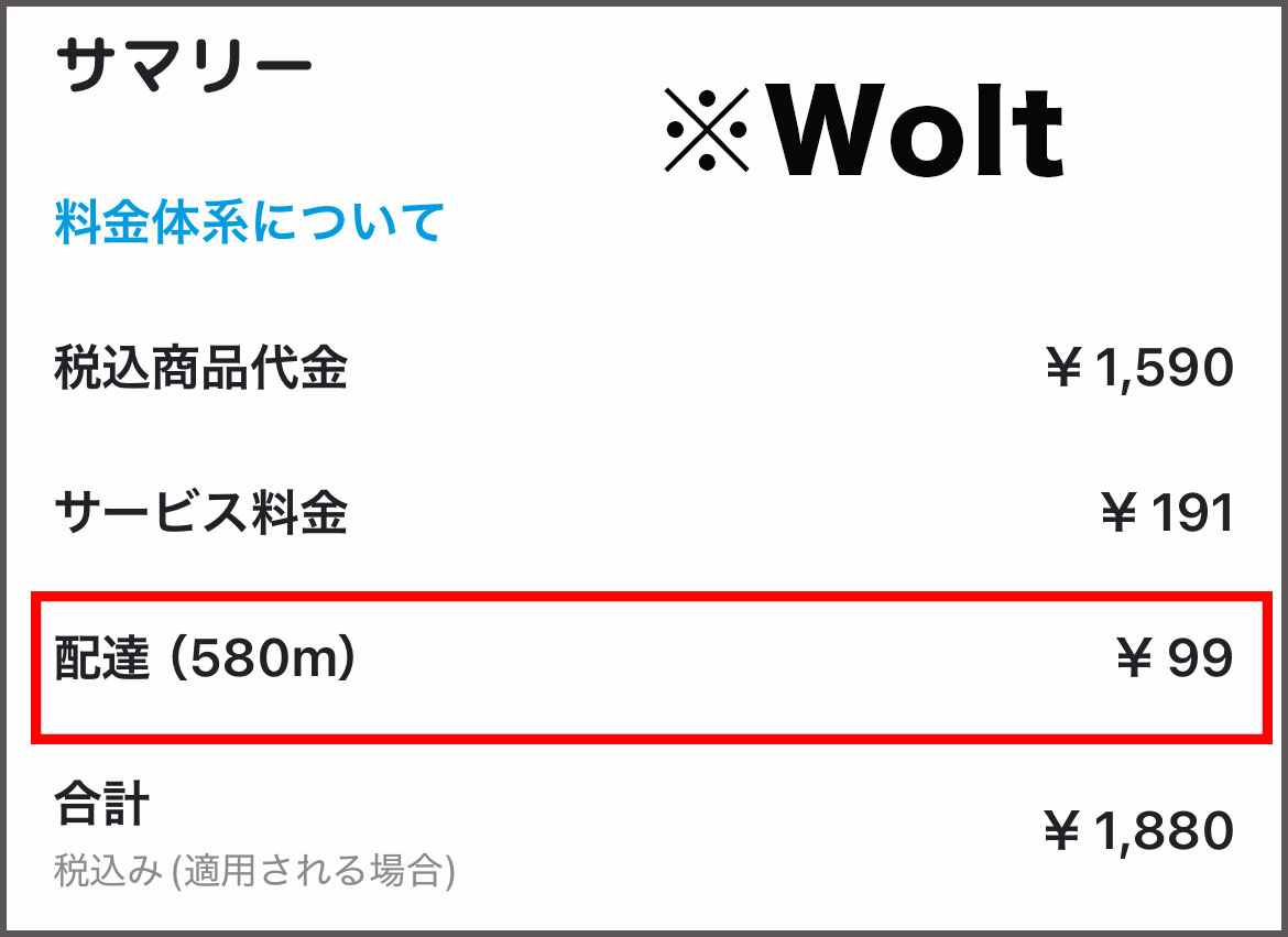 ・Woltは配達手数料が安い
