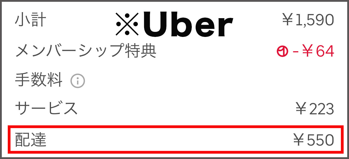たとえば、今回のマクドナルドの注文の場合、Uber Eatsでの配達料は550円。