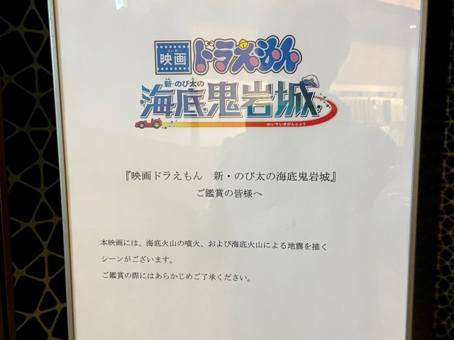 公開から間もなくして、5歳の娘と一緒に映画を観に行った私。スクリーンに入ろうとすると、入口にはこんな貼り紙が。