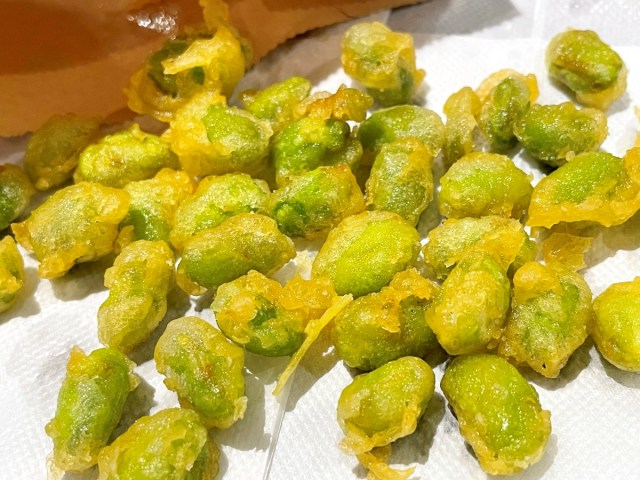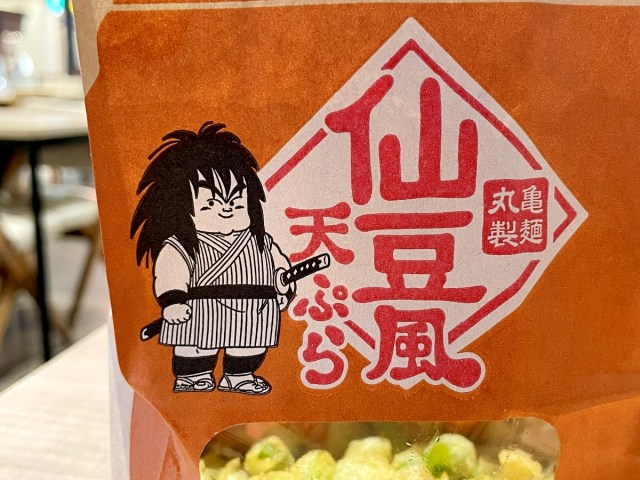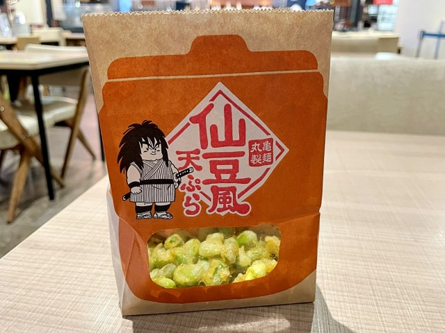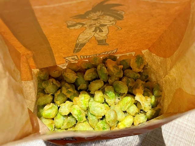 まずは先ほどしょうけぇ(紹介)した『仙豆風天ぷら』(税込290円)からだ。『ドラゴンボール』でおなじみの回復アイテム・仙豆をモチーフにした枝豆天ぷらが専用紙袋に入ってっぞ!