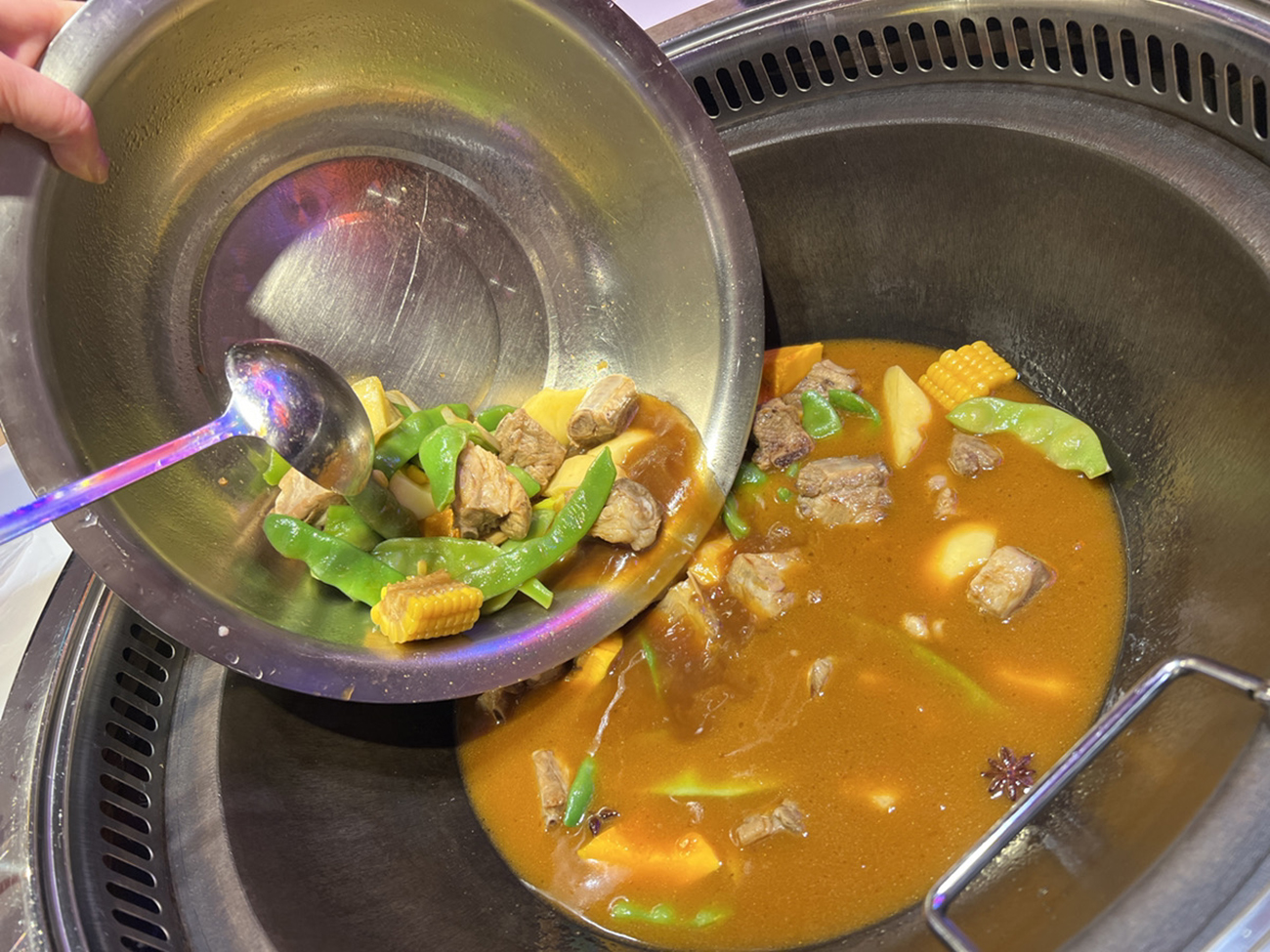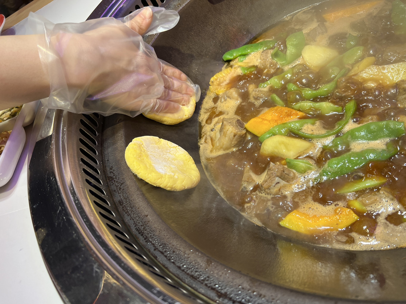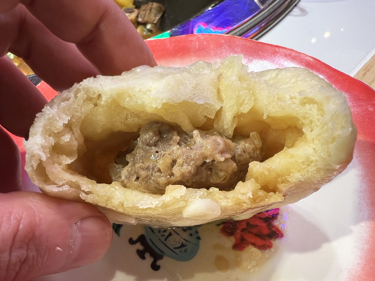 話を聞きながら食べた中国東北部の郷土料理「鉄鍋炖(テッカドン)」にもそのこだわりが感じられた。机に設置された巨大な鉄鍋に色んな具材を投入する中華版鍋なんだけど、蒸気で肉まんとか蒸しパンまで同時に作る豪快さには大陸を感じる。肉まんが肉汁だくだくでウマイ。