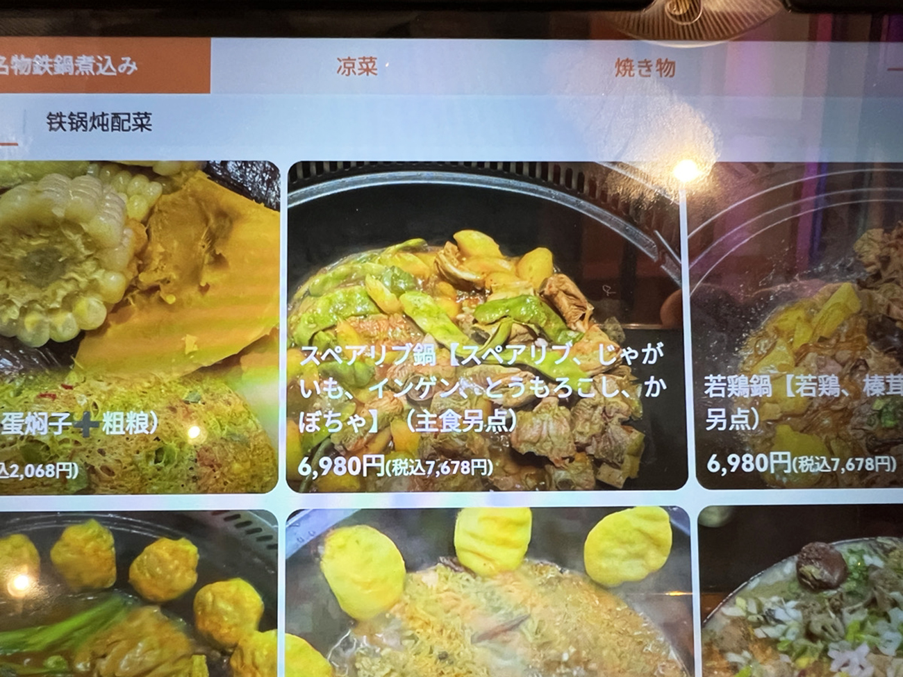 ▼ランチと比べると値は張るが、鉄鍋炖はじめ、ディナーは会食向きのラインナップが揃う