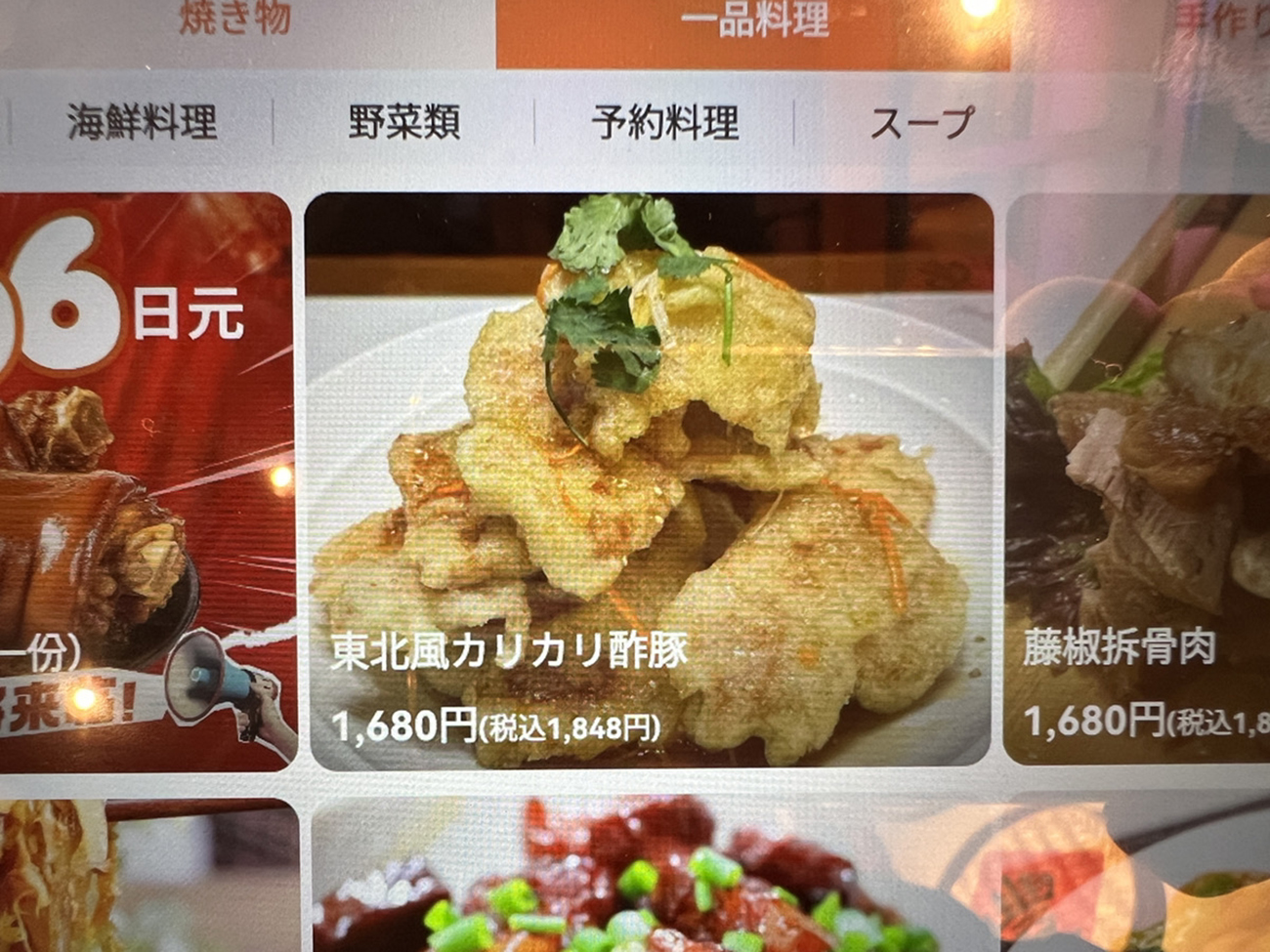この鉄鍋炖を始め、夜はディナーメニューとなっている『大豊収』。酢豚とかも東北部の酢豚であるため、私が知ってるものと全然違った。