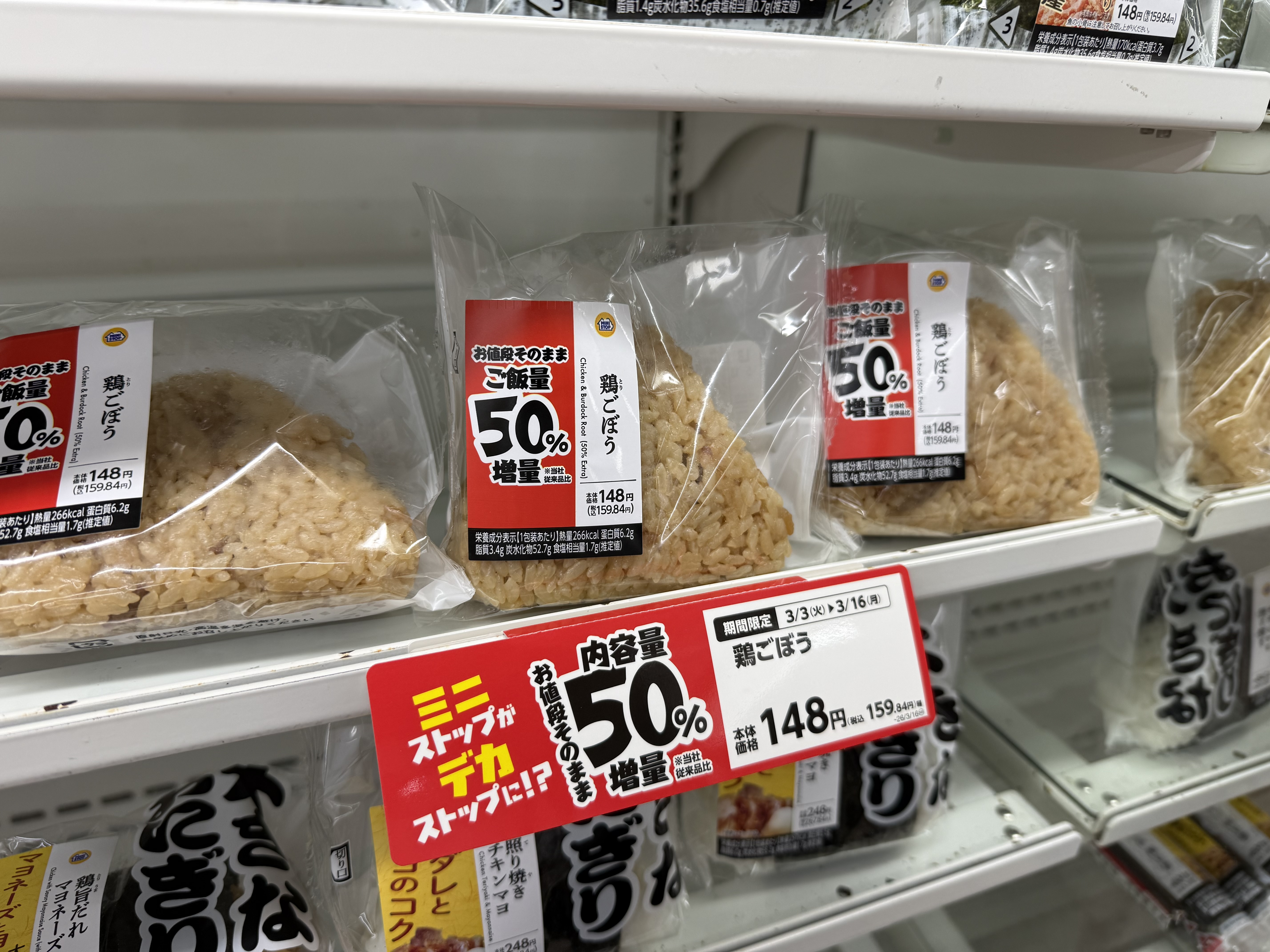 気付くのが遅れて大変心苦しいが、現在ミニストップでも『お値段そのまま50%増量フェア』が開催中のようだ。ファミマやローソン、何ならNewDaysでもすぐ気付くのに……もっと派手にアピってよ、ミニストップ!