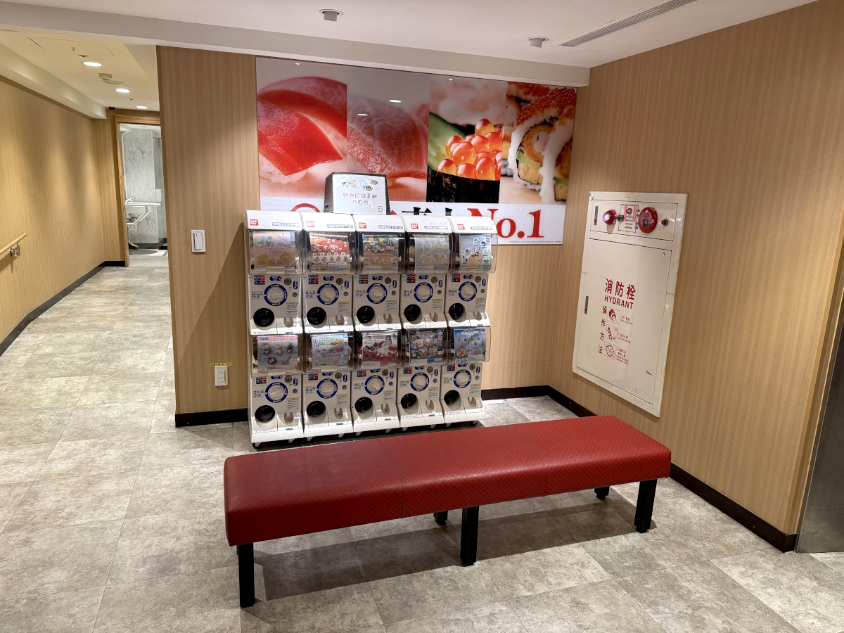 ▼ベンチとガチャガチャの組み合わせまでスシロー。