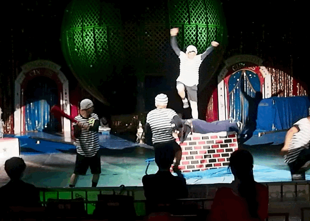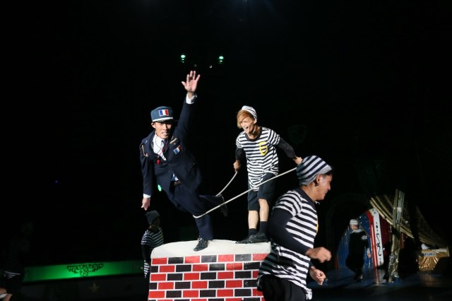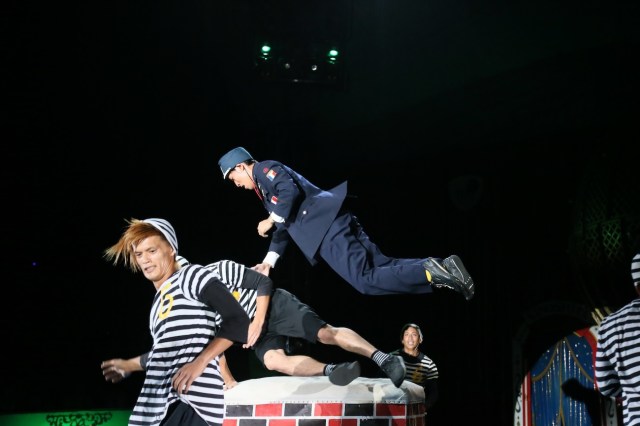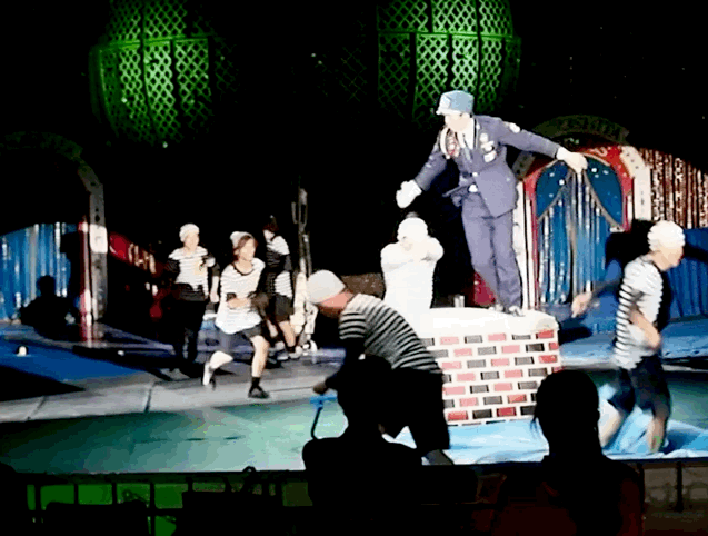 無我夢中で笛を吹き、トランポリンと跳び箱を飛び、転び、叩かれ、囚人たちを追いかける。半年間 体に叩き込んできた動きが頭で考えなくても自然に出る。