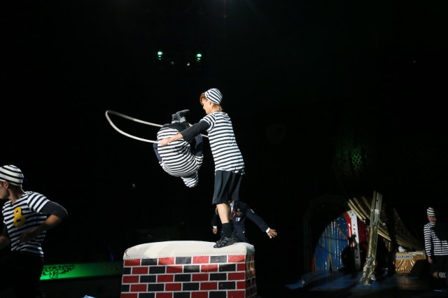 いよいよリハーサルが始まった。「スーパーキャッツ」という跳び箱とトランポリンを使ったコミックショー。軽快な音楽に合わせて警官役の私が囚人たちを追い回す内容だ。
